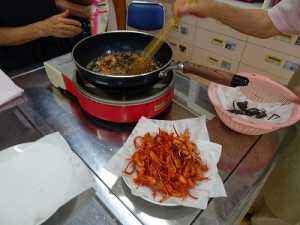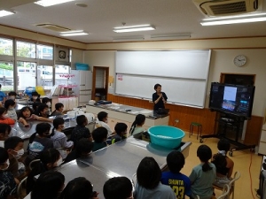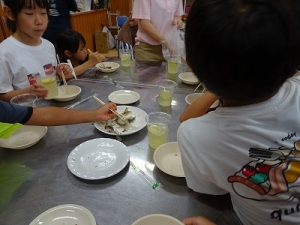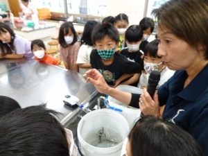 3年生は総合的な学習の時間に、四万十川を中心に学習を進めています。四万十川での遊び、漁業体験、水質調査など多くの学習を進めてきました。7月には、自分たちが造った川エビ漁の仕掛けを四万十川に仕掛け、たくさんの川エビを捕りました。今回は、子供達から出た「とったエビを食べてみたい」という願いから四万十川漁業組合や商工会議所、玉姫の会の皆様にもご協力いただきこの授業が実現しました。皆さんのご厚意で、エビだけではなく鮎やゴリ、カニなどの食材も提供していただき、四万十川の恵みがテーブルにたくさん並びました。川の学習をした後、試食へ!!えっこれ「おいいしい!」「もっと!」など子供達の声が響いていました。四万十川は有名ですが少しずつ川から子供達が離れている現実もあります。この学習が、子供達にとって郷土の宝「四万十川」を誇りに思うきっかけになればと思います。地域の皆様、ご協力ありがとうございました。