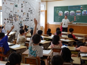 10月7日(火)文部科学省初等中等局主任視学官の田村学先生をお招きして、高知県生活科・総合的な学習の時間研究発表会が開催されました。中村小学校の生活科・総合的な学習の時間は教科の関連を図りながら、自分たちの「まち」を中心に計画されています。当日の授業では、2年生は「いくぞ中村のまちざまに知りたい【気付く】」3年生は「ぼくら3年もっと楽四万十たんけんたい!【楽しむ】」4年生は「守れ!大好き!四万十市!【見つめる】」5年生は「おいしさ再発見!四万十ブランド~食を支えるふるさとの味~【関わる】」6年生は「未来へつなごう私たちの町!~小京都中村プロジェクト~【つなぐ】」と題して授業が展開されました。どのクラスも子どもたちが議論し自分の考えを友だちに伝え合う場面がたくさん見られました。授業後は、パネルディスカッションと次期学習指導要領に関わる田村先生の講演が開かれました。学びの多い、1日となりました。
