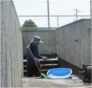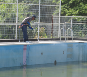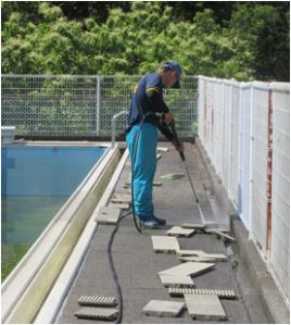 5月28・29日の2日間、地域ボランティアにご協力いただき、プール掃除を行いました。 28日は炎天下の中、29日は雨模様の中、高圧洗浄機を使ってこびりついた汚れを丁寧に落としていただきました。