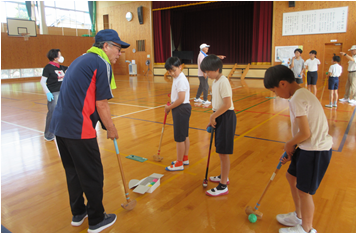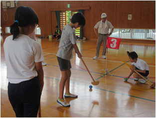 クラブの時間に、地域の方からグランド・ゴルフを教えていただきました。 子どもたちにとっては初めての経験でしたが、優しく、丁寧に教えていただき、いいところを積極的に褒めてくださったので、前向きに取り組むことができました。 「まだやりたい!」「またやりたい!」という言葉が出ていました。 次回は10月に練習試合を予定しています。