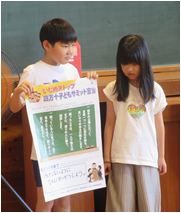 今年度は、参観日の機会を利用して、保護者が見守る中、いじめをなくすための行動目標を、各クラスの代表者が発表しました。