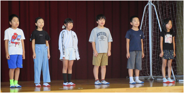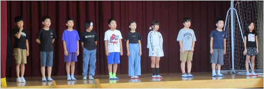 本年度、2回目となる発表朝会に、「聞く人に伝わるようにはっきりとした声で詩を読む」という目標を掲げて取り組んだ3・4年生。 3年生は、体育の後ろまでしっかりと聞こえる声が出せていました。 4年生は一人読みと4人での合わせ読みを交互に組み合わせた高度な読み方に挑戦し、大成功でした。 1回目の発表朝会よりも表現豊かに暗唱できていた今回。成長が感じられた3・4年生でした。