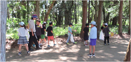 あかつき館で防災学習をして、お弁当を食べた後、入野の松原で秋見つけをして帰ってきました。