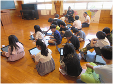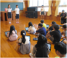 演説後は、タブレットを使って全校児童が一人ひとり投票を行いました。低学年も真剣な表情で投票できていました。