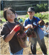 更に、サプライズとして昨年度まで本校で務めていた大野教頭先生が登場し、賑やかな芋ほりとなりました。