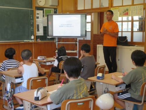 まず、四万十川財団の神田さんに学校に来ていただき、四万十川や干潟に生息する生き物について教えていただきました。子どもたちは、干潟があるから生き物がた