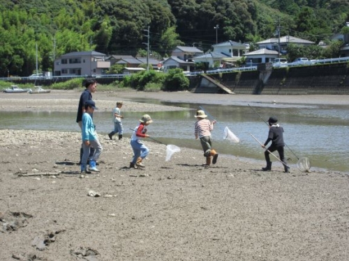 その後、学校近くの干潟に行き、実際に四万十川に生息する生き物を調べました。トビハゼやチゴガ二等、珍しい生き物を見つけることができて大喜び!体験活動を通して四万十川の素晴らしさに気付いた子どもたちでした。